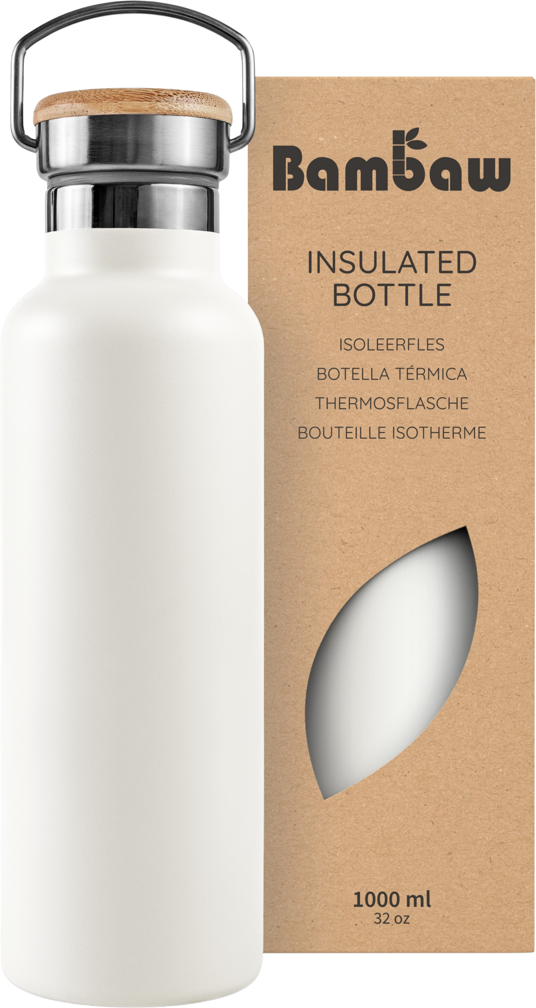 Bambaw Insulated Stainless Steel Bottle, 1000 ml , Polar White