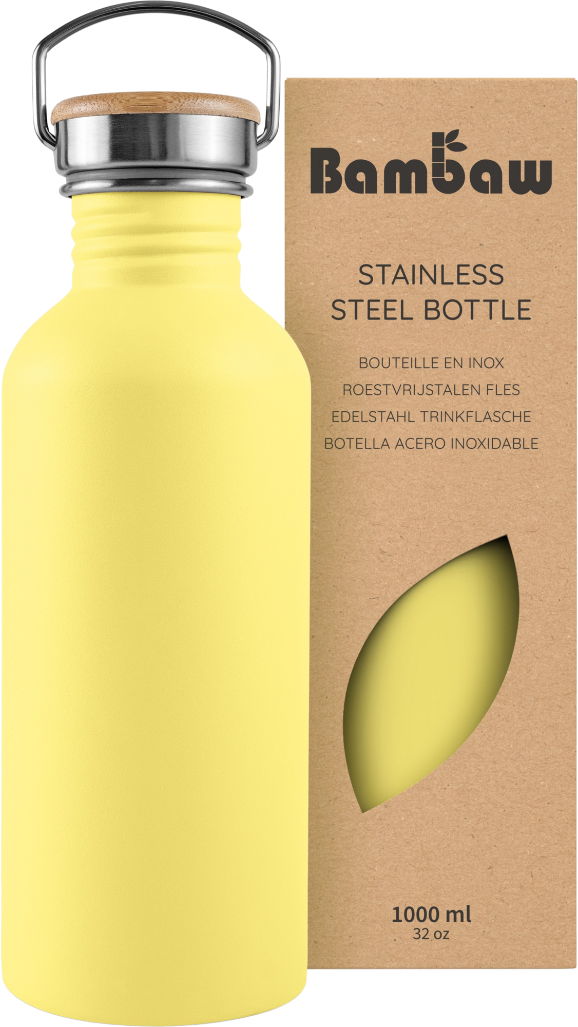 Bambaw Stainless Steel Bottle, 1000 ml , Yellow Beam