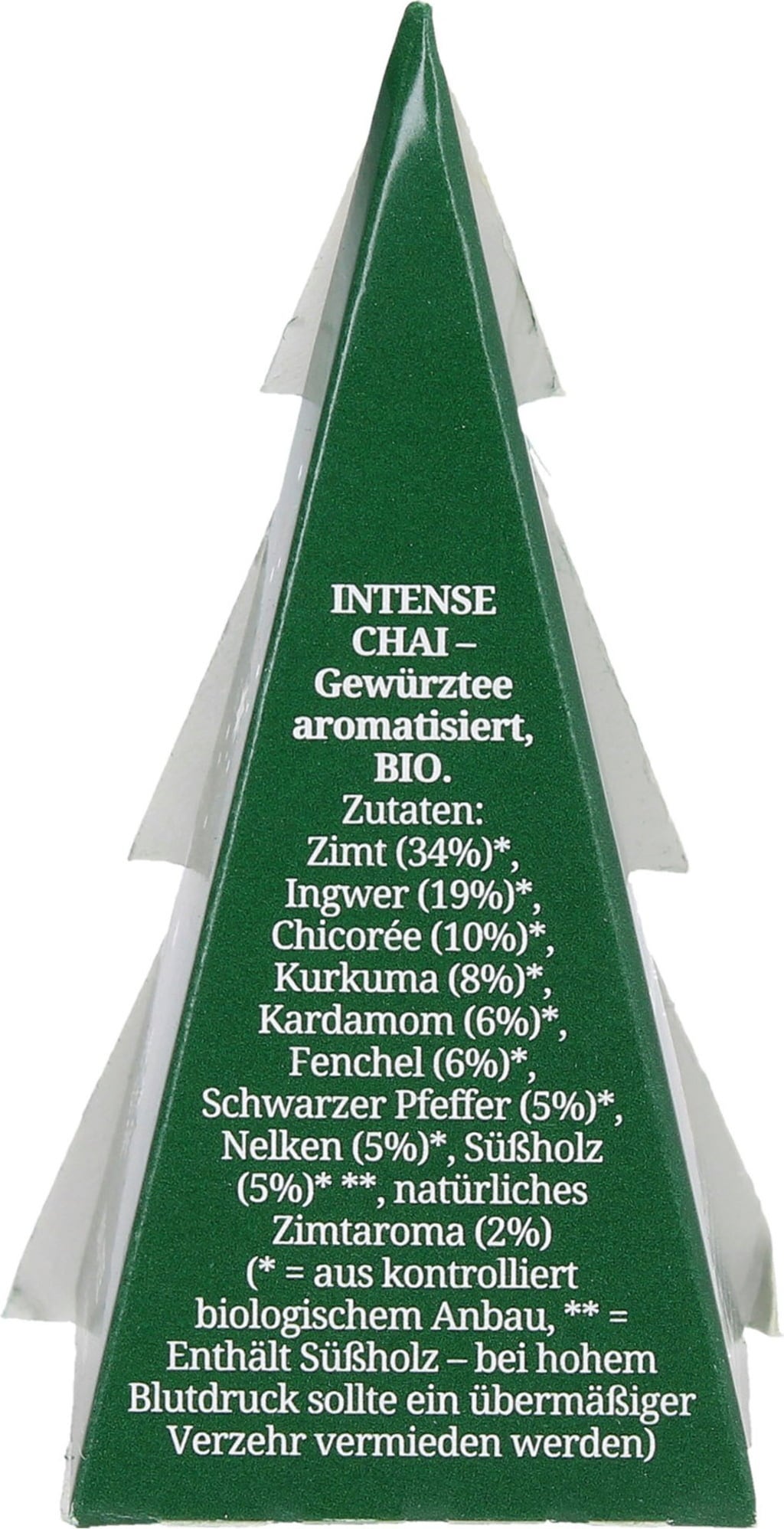 Warming ginger, tempting cinnamon, fine liquorice and other spices are perfect to thaw the soul, mind and spirit on freezing cold winter days. An excellent organic chai tea - entirely without caffeine, in a tear-resistant, robust pyramid tea bag.