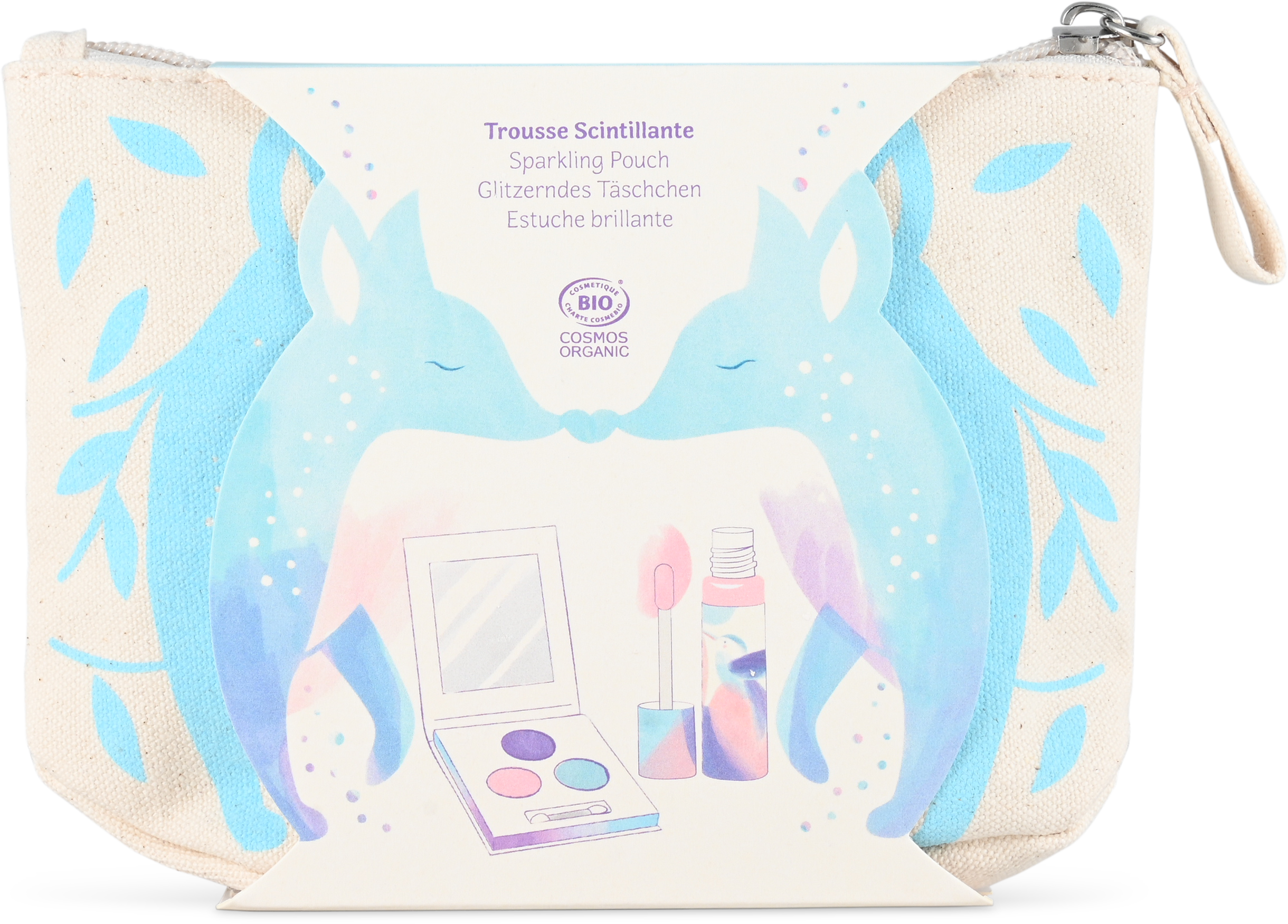 This pretty bag contains all the make-up components that a child's heart desires! The set includes an eyeshadow palette with 3 luminous, pearly shades and a glittering peach-scented lip gloss. All products are gentle on children's skin, hypoallergenic and easy to wash off. Perfect as a gift.