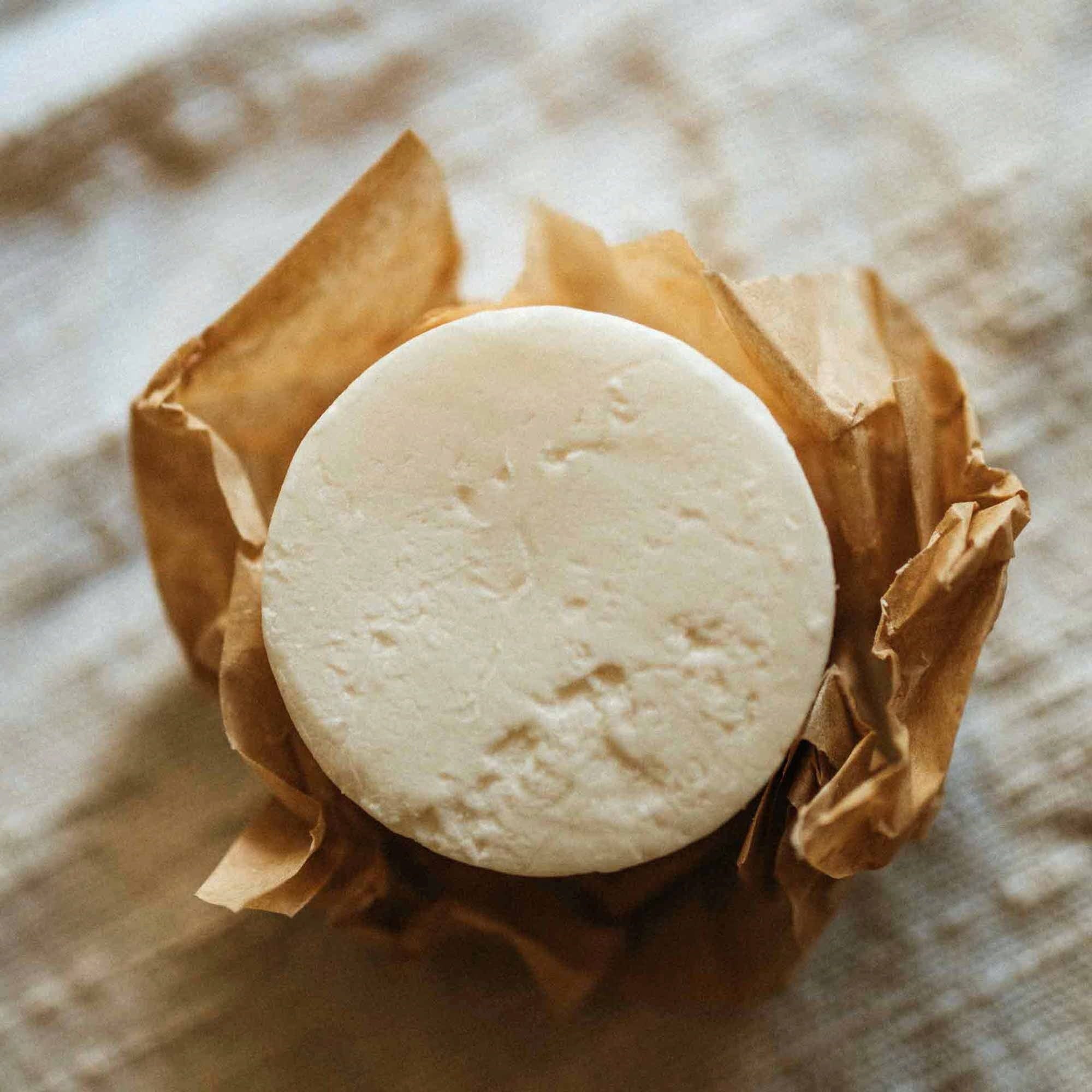- Lather the solid shampoo between your hands.