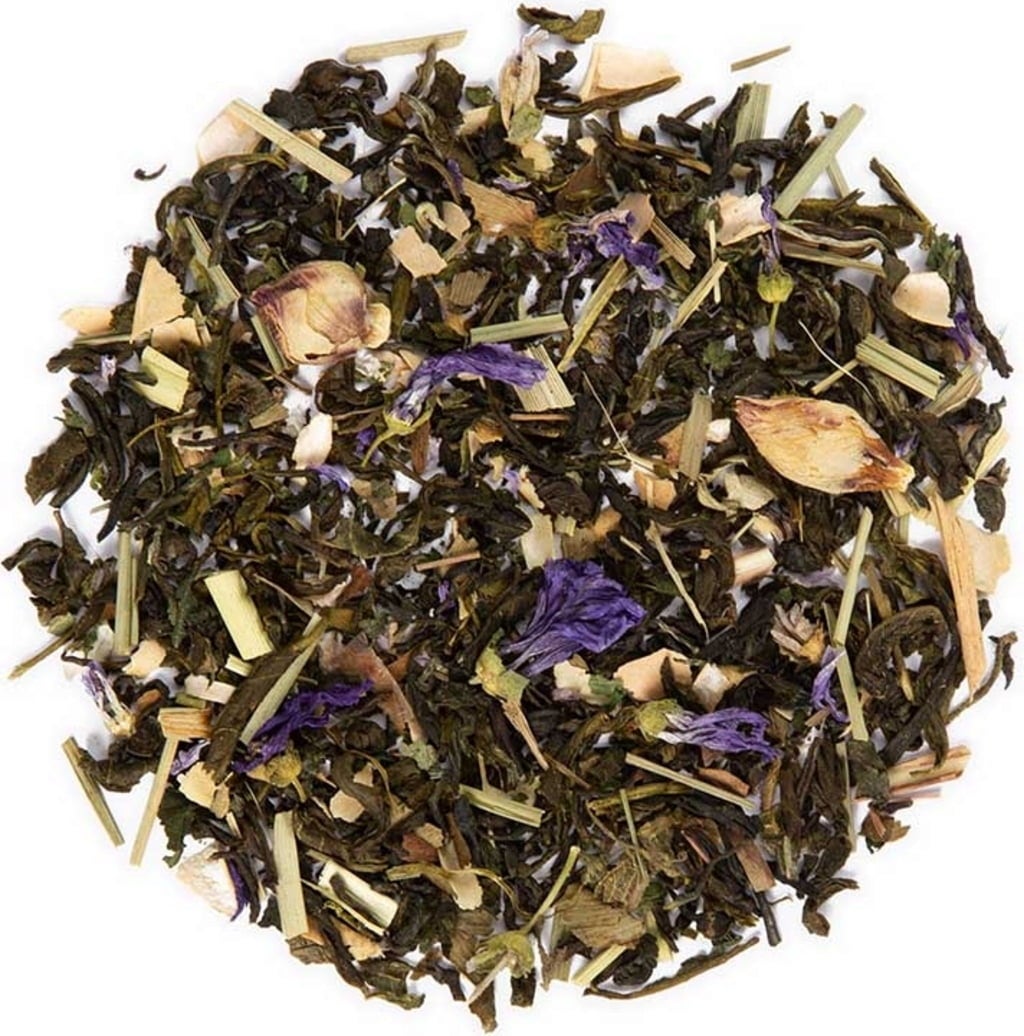 55 % White Tea, 15 % Jasmine Green Tea, 6 % Lemongrass, 5 % Nettle Leaves, Bean pods, Ginkgo, Mallow flowers, 2 % Hibiscus buds, white, 1 % Spirulina Algae Powder, Natural aroma
