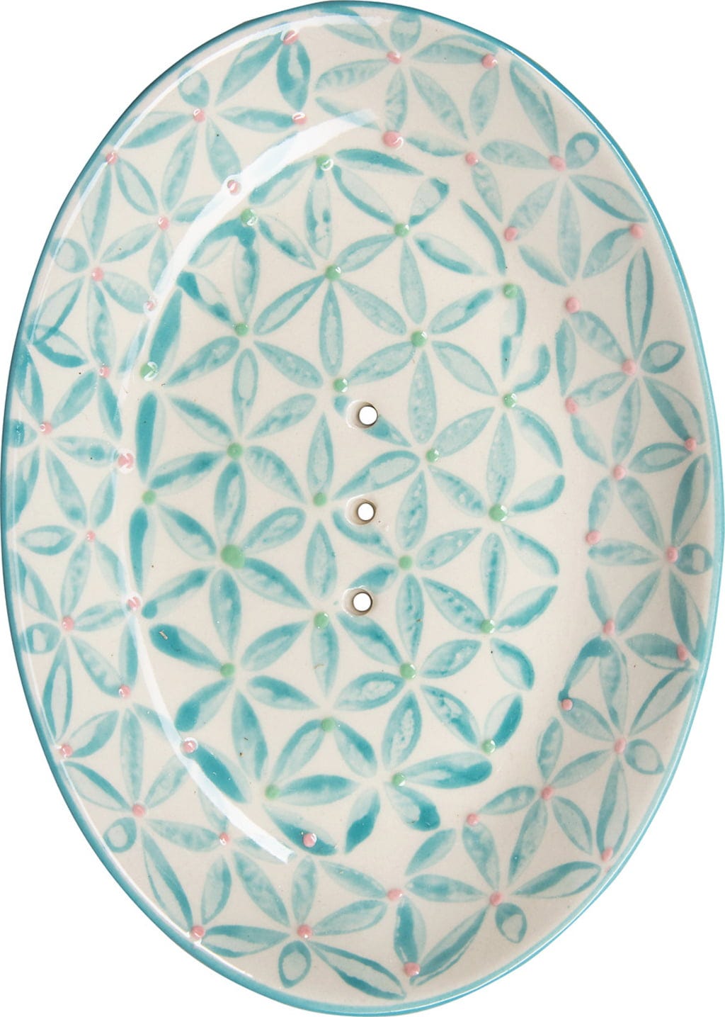 Oval soap dish with a delicate print in soft colours